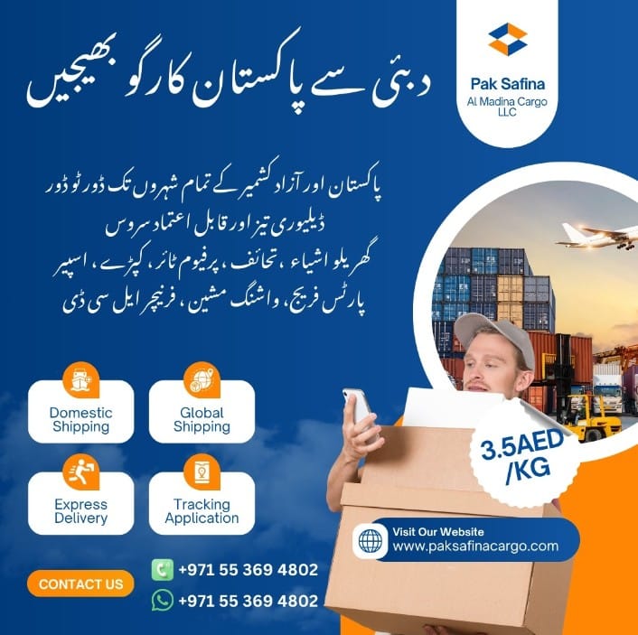 Our door-to-door service includes Cargo pickup from your location in the UAE Air cargo or sea cargo transportation Customs clearance handling Final delivery to the destination address in Pakistan You don’t need to worry about paperwork or logistic